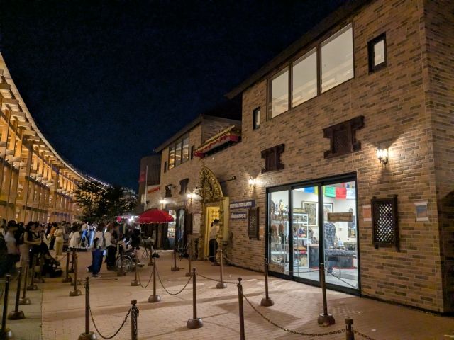 展示室に加えて、街そのものが再現されたかのようなストリートが出来上がっているパビリオン。展示ボリュームは少なめですが、現地の空気を味わうことができます。話題の1,000円ガチャにも挑戦してみました!