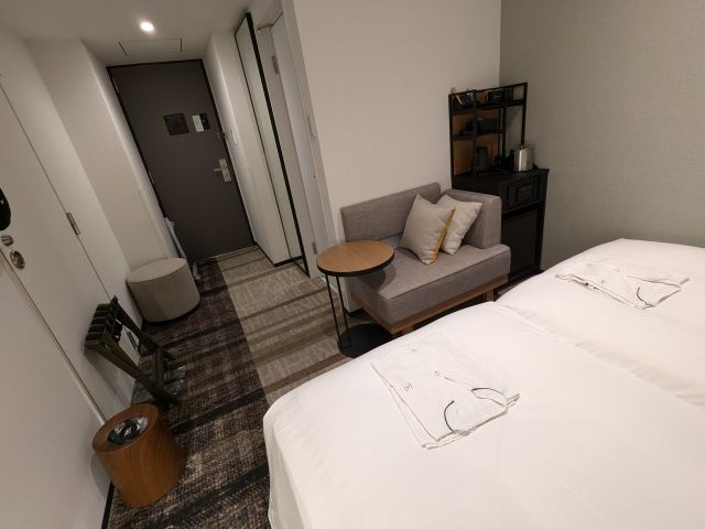お部屋もめっちゃキレイ!ソファとテーブルもあり、スーツケースを広げるスペースも充分確保できます。