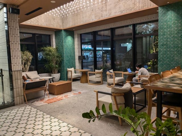 1階入口のラウンジは、10:30~24:00の間フリースペースに。コーヒーサービスもあります。