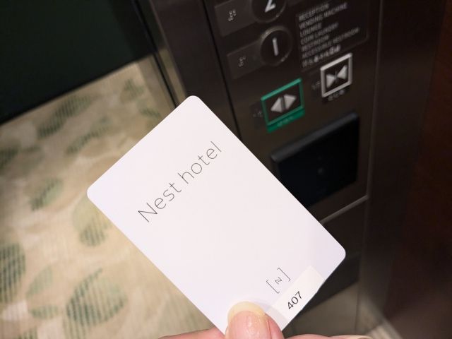 カギはカードキータイプ。お部屋の解錠だけでなく、エレベーターもこのカードキーをかざさないとフロア番号が押せません。