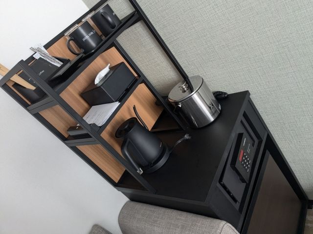 アイスペール、ポット、カップ、冷蔵庫、金庫などの設備も。