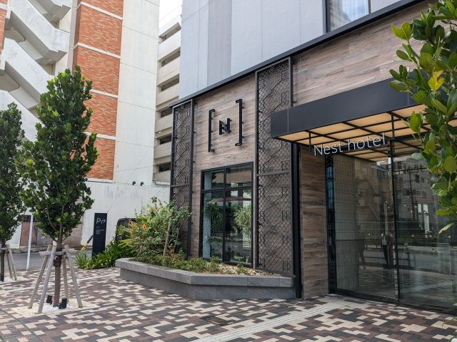 東京、大阪、博多などに展開するネストホテル。2022年3月にオープンしたのがネストホテル那覇西。街なかに佇むおしゃれな雰囲気のホテルで、清潔感あふれる外観が魅力的です。