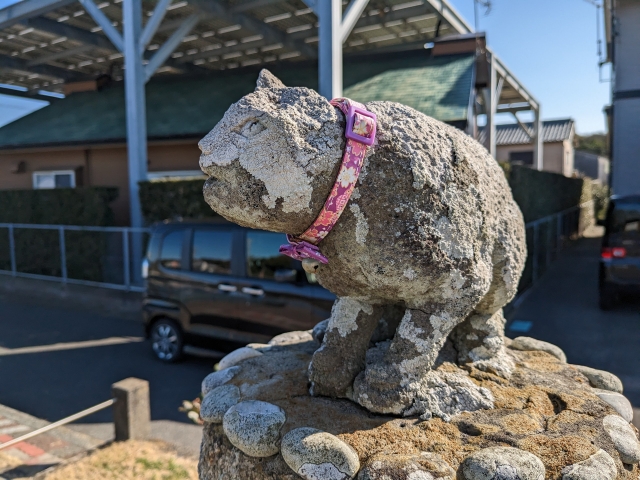 「猫塚」は駐車場が無く、道も狭いため路上駐車もしづらいです。ねずみ塚から徒歩10分ほどなので、歩いて向かうのがおすすめ。ただし、猫塚周辺は交通量は少なく、そんなに滞在するような場所ではないのでちらっと見るだけなら、ぎりぎり路上駐車でも大丈夫かもしれません。