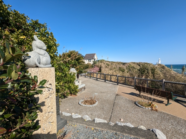 「ねずみ塚」は目の前に駐車場があります。御前埼灯台も徒歩5分ほどなので、合わせての訪問がおすすめです。