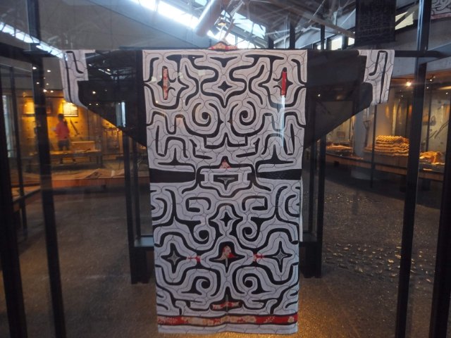 こちらはカパリミという衣服。他では見かけない特徴的なアイヌ紋様は、現代人から見ても魅力的なデザインに映ります。