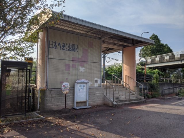 園内にはJR加古川線の日本へそ公園駅もあります。モザイクタイルで彩られた無人駅。周辺には民家が無いためか、1日平均の乗車人員は8人程度というウワサも。