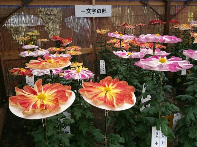 「一文字の部」では、「これ菊の花!?」と思うような花がたくさん。こんなぺったらにすることができるんですね。