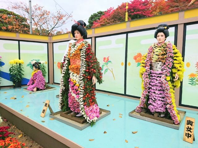 二本松の菊人形では、毎年テーマが決められており、それに合わせた菊人形が並びます。訪問した2017年のテーマは「EDO TRIP ~菊花繚乱!徳川時代絵巻~」。