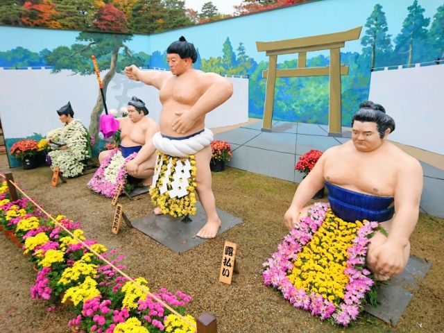 まだまだ続く菊人形!相撲ももちろん菊デコです。