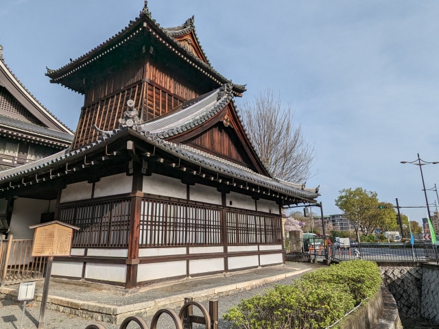 こちらは太鼓楼。ときは幕末、池田屋事件以降隊士が増えた新選組、屯所が手狭になったため、この本願寺へ移設。その際に、北集会所とこの太鼓楼を使用していたそう。北集会所は姫路の亀山本徳寺に移築されているため、この太鼓楼が唯一新選組の足跡を感じることができるポイントなのです。