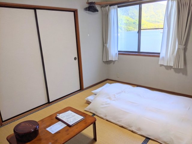 こちらが今回泊まったお部屋。布団は最初から敷いてくれているところにも優しさがあふれています。