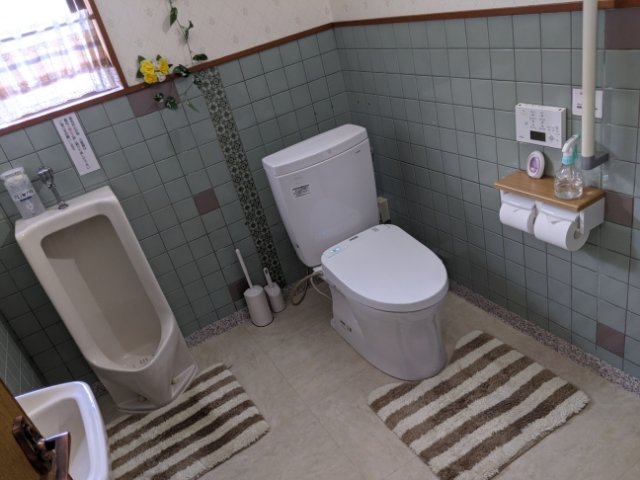 トイレは男女兼用タイプ。かなりキレイに清掃されており、随所に気づかいを感じます。1階と2階の2ヶ所あるのも嬉しい。