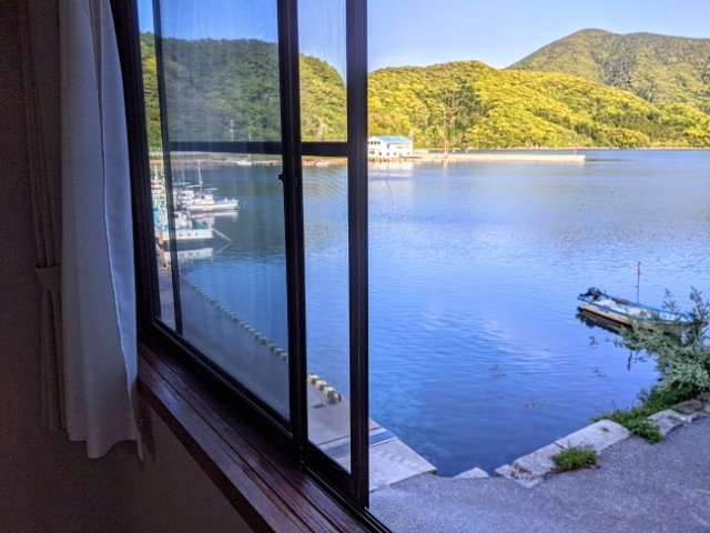 実はこの民宿、窓の向こうはすぐ海!オーシャンビューで気持ちの良い朝です。