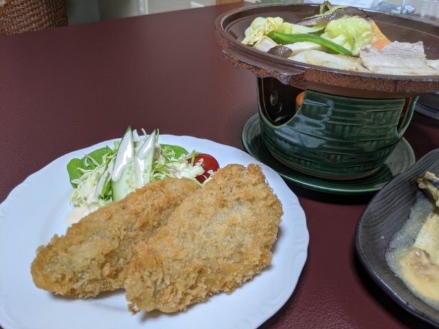 この時点で大満足なのですが、このあとさらにアジフライも追加。ボリュームたっぷりの夕ご飯でお腹いっぱいです!