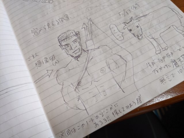 部屋には宿泊者がいろいろと記す想い出ノートも。開いてみると「ご主人の想像図 by 今年で49歳(中二病)」が・・・!何度も宿泊しているけどご主人は声だけで、姿を見たことがないそうです。
