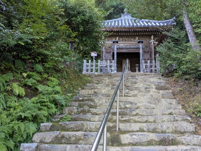 本堂の先には、石段があります。上ったところにあるのが湛空廟。再建につとめ、ここで教えを広めた湛空上人の碑を収めています。