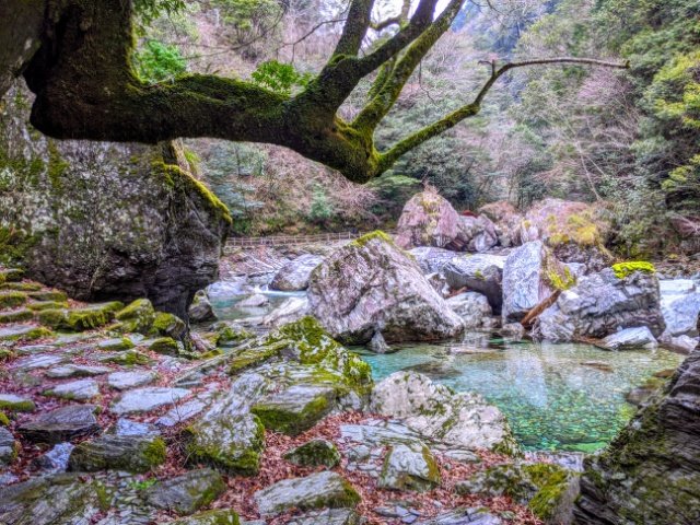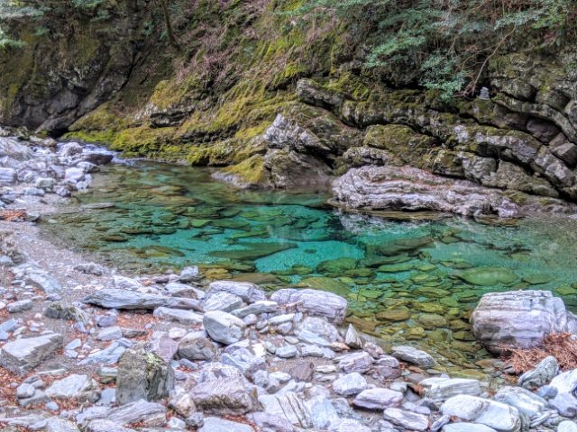 仁淀ブルーと称される、青く澄んだ水が美しい仁淀川の上流。複数のブルースポットがありますが、今回は安居渓谷周辺を散策しました。水晶淵、砂防ダム、せり割洞穴の3ヶ所をさらっとめぐります。