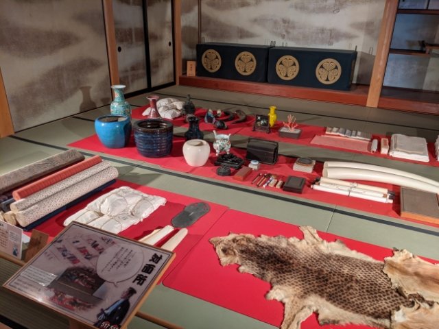 ここは対面所と呼ばれる場所。たくさん並んでいるのは反物や象牙、毛皮などの貿易品。ここでは大改(おおあらため)と呼ばれる役人による貿易品のチェックが行われていました。