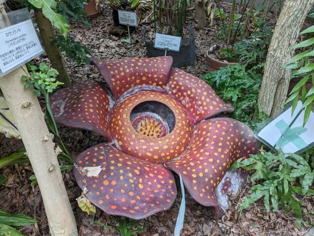 見学していると、なんとラフレシアを見つけました!!さすがに実物ではなく模型ですが、リアル植物の中で見るとリアリティたっぷり。あらためてその大きさに驚かされます。