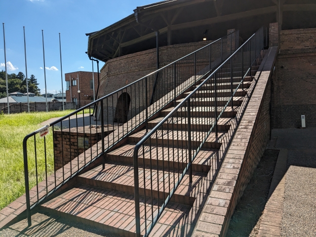 順路にそって進んでいくと、輪窯の外へ。そのまま進むと、2階へと続く階段が見えてきます。