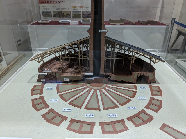 この窯は、明治23年(1890年)に完成したもの。ドイツ人技師ホフマンが考案した「ホフマン式輪窯」と呼ばれるタイプの窯であるそう。非常に効率よくレンガを生産することができるそうですが、いったい普通の窯とは何が違うのでしょうか?