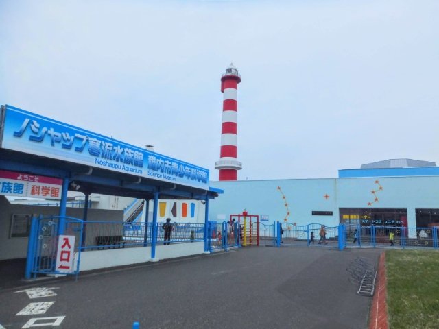 そんなノシャップ岬にはノシャップ寒流水族館があります。なんでもとにかく最北のこの街、もちろんこちらも最北の水族館となります。背後には紅白の稚内灯台がランドマークのようにそびえています。