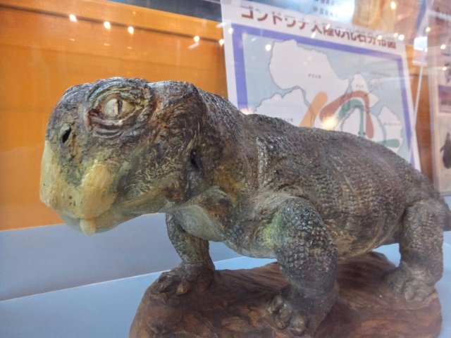唐突にあらわれるリストロザウルス。まるでセルの第一形態のような怪しい目つきをしています。名古屋港の『ふじ』でもいきなり説明無く登場しました。南極と関係ある生き物なのでしょうか?