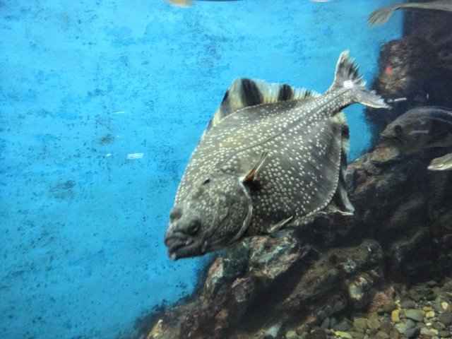 ツートーンのヒレがおしゃれなマツカワカレイもぐるぐる泳ぐ!大型で味も良いため、鰈の王様とも呼ばれるサカナです。
