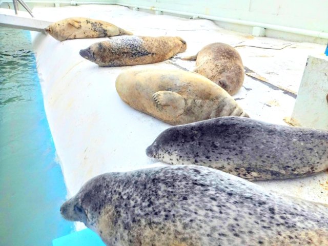 この時期はアザラシにとって毛が生えかわる季節。とにかくだるくて何もする気がおきないのだと思います。