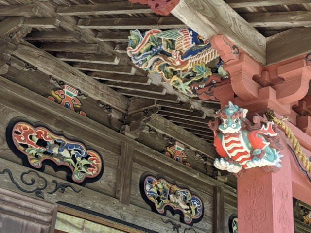 随所に色鮮やかな動物の彫刻が施されており、まるで徳川家康を祀る東照宮のようです。