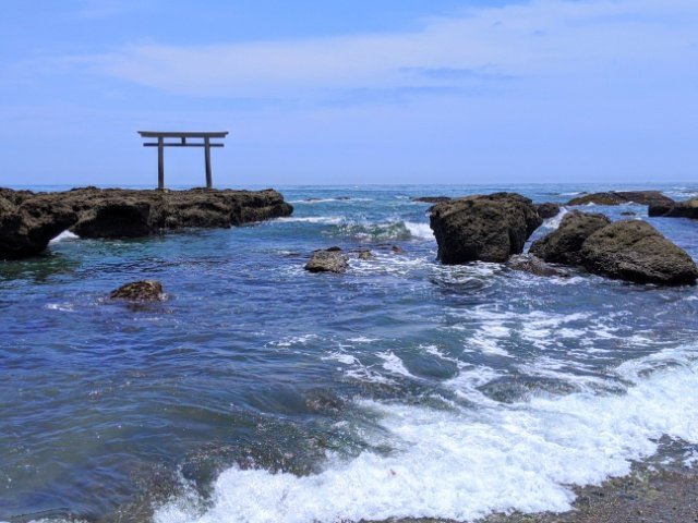 大洗磯前神社といえば、海に立つ鳥居。御祭神が降り立った地「神磯」に建てられています。