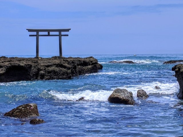 この辺りは波が激しく、常に波しぶきを浴びています。この鳥居を見に行くなら、ぜひ事前に潮を確認してから行くのがおすすめ。海の中に立つ様子を見るなら満潮、岩場にそびえる様子を見るなら干潮を狙って訪問するのが良さそうです。