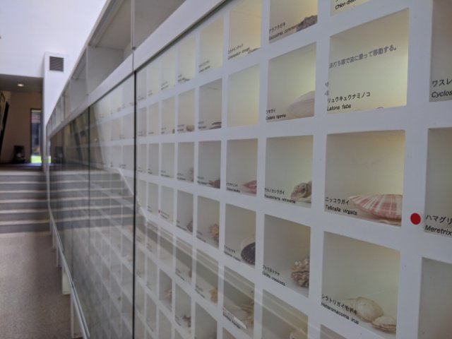 館内には、貝がら・サンゴ・イカ・タコ・サカナなど海洋生物の標本がびっしり。なかなかマニアックな種類もそろってます。小さい生き物の標本の近くには虫眼鏡も完備。隅々までじっくり観察できるのは標本ならでは。