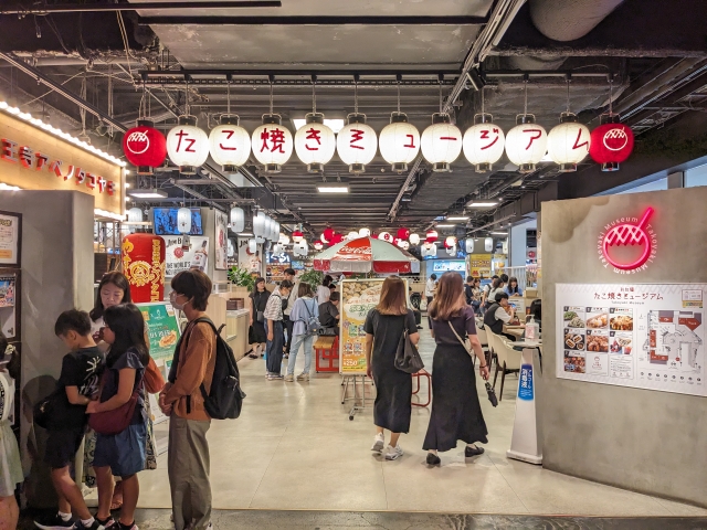 にぎやかな商店街を抜けた先にあるのが、今回ご紹介するお台場たこ焼きミュージアム。タコ焼き屋が集まるフードコートタイプの施設なので、ちょっとした休憩やおやつタイムの立ち寄りにもおすすめです。