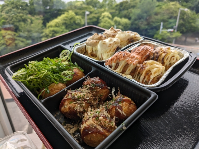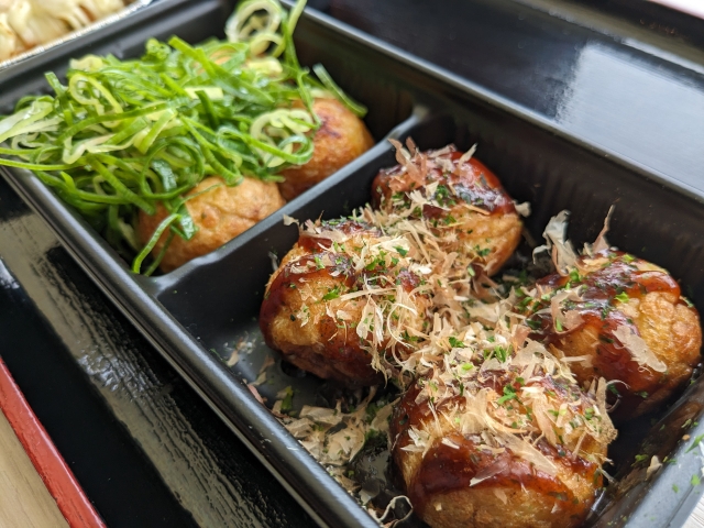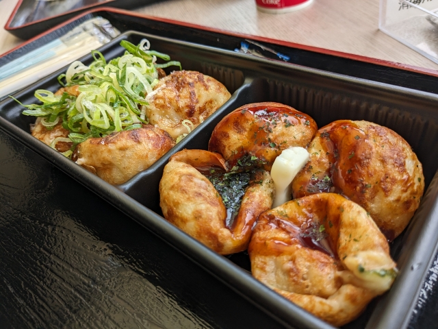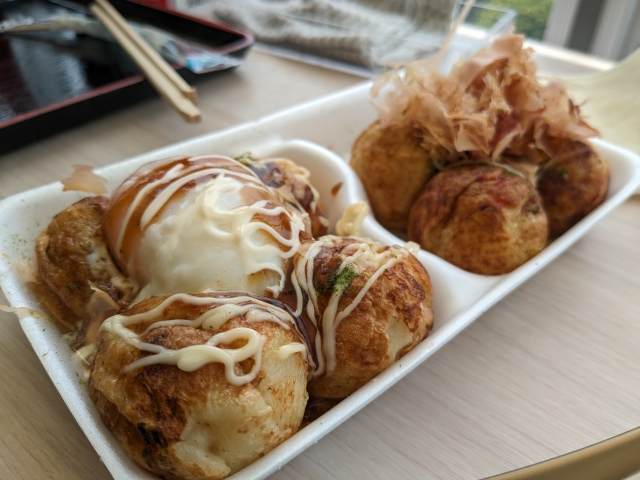 ここも当然2種盛りがありますが、他とは異なる2種類×7個の14個盛り。一見すると多くみえますが、ここのたこ焼きは小粒タイプなので、ぺろりと食べられます。