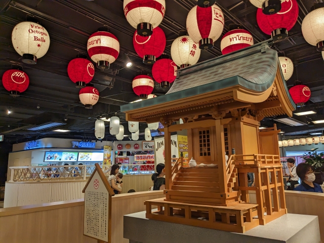 ミュージアム内には、多幸八喜恵美寿神社が建てられています。雰囲気づくりのためのインテリア的な神社かと思いきや、「えべっさん」こと大阪の今宮戎神社を分祀したもの。商売繁盛の神様として知られています。