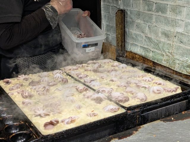 焼き具合やトッピングなど様々なバリエーションがあるたこ焼きですが、ここのたこ焼きは見た目が凄い!たこ焼きひと粒に、小さなイイダコがまるまる一匹入っているのです。タコの割合が異常に高いたこ焼き、どんなお味なのでしょうか?