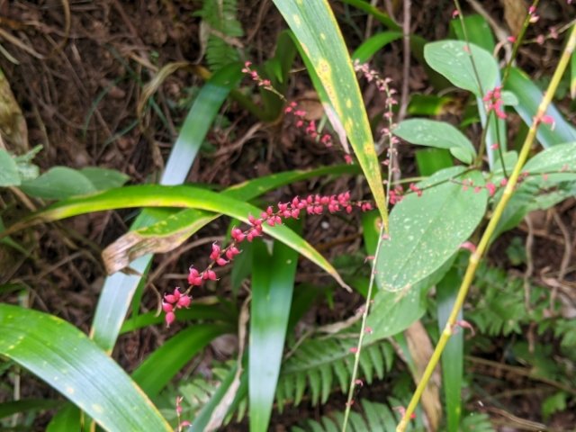 細く伸びたこちらの花は、ご祝儀袋などに用いられる水引に似ていることからミズヒキソウと名付けられています。表からみると赤い花ですが、穂先を持って裏側を見ると白くなっています。水引という名前に加えて、紅白カラーというとってもおめでたい花です。