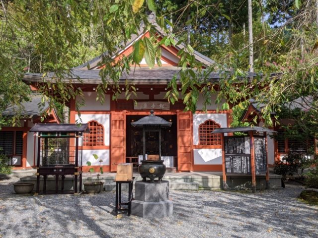 平成元年に建立された金色不動堂。平安時代の僧である智証大師(円珍)作とされる金色不動明王を安置していますが、秘仏のため通常は閉扉されています。毎年4月に行われる不動大祭の期間に限り開扉されているそうです。