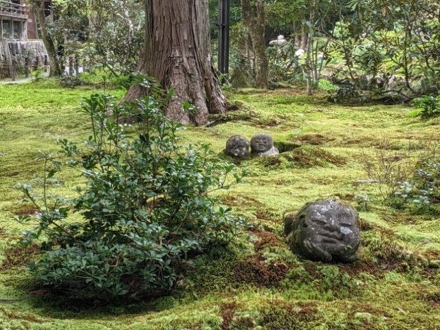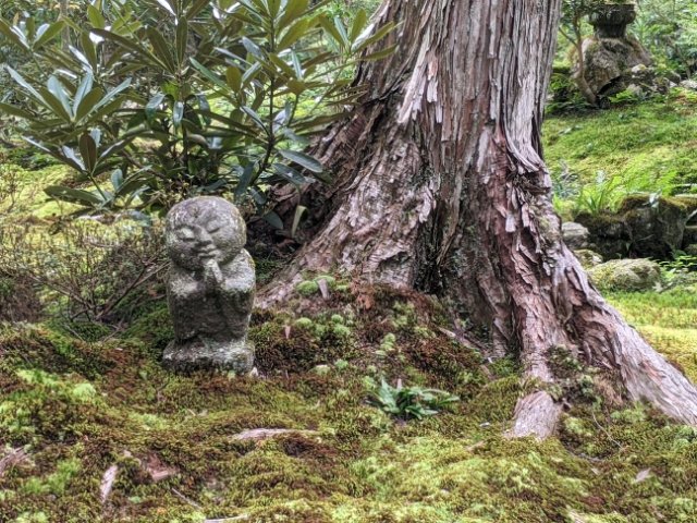 境内に多くの見どころがある三千院ですが、人気なのがお地蔵様。普通のお地蔵様に比べてデフォルメされており、その姿はほぼ2頭身。彫刻家の杉村孝によってつくられたこのかわいらしいお地蔵様は、「わらべ地蔵」と名付けられています。