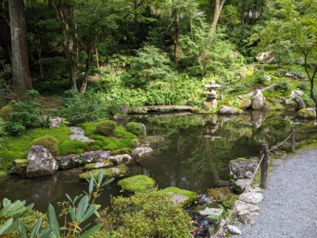 写真を撮り忘れてしまったのですが、有清園の側に往生極楽院というお堂が建っています。もともと三千院とは別の寺院でしたが、三千院がこの地に移転する際、吸収合併されたそう。堂内では国宝に指定された阿弥陀三尊像を安置しています。