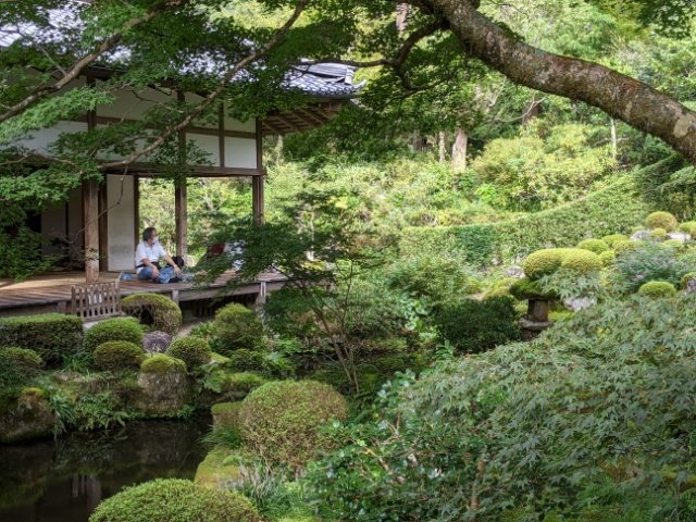 京都の中心部から少し離れた大原において、最も人気のある寺院。自然豊かな境内には季節の花とグリーンの苔が魅力の2つの庭園が広がります。かわいらしい姿の「わらべ地蔵」が、訪れる人を優しく出迎えてくれます。