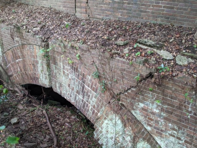 第三砲台跡同様に加農砲が設置されていた第四砲台跡。損壊が激しく、さらに大部分が埋まっているため、あまり原型はとどめていません。