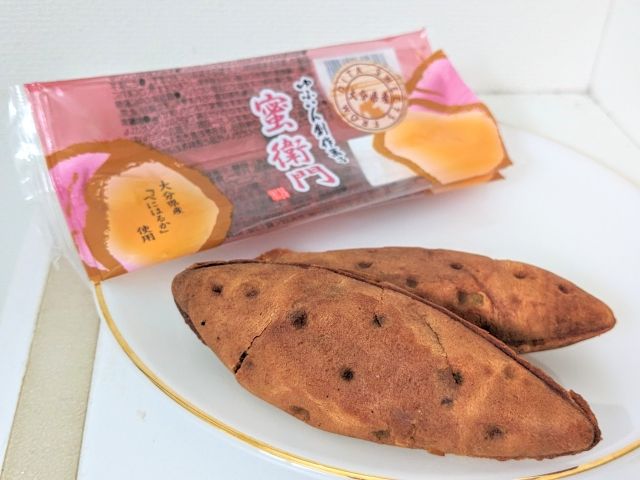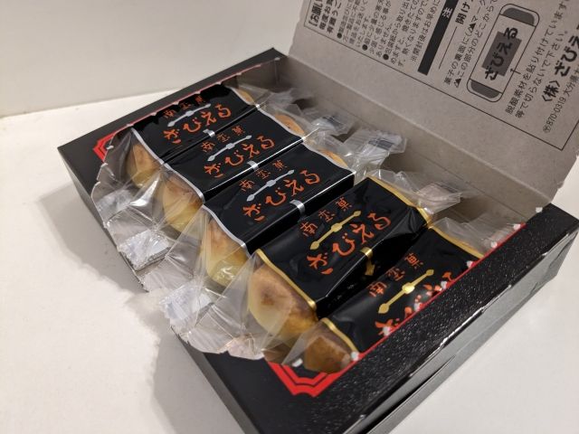 大分県産のさつまいも「べにはるか」を使ったお菓子。見た目はまるで焼きいものような形をしております。お味はスイートポテト。オーブンで軽く炙るとさらに美味しくなります!