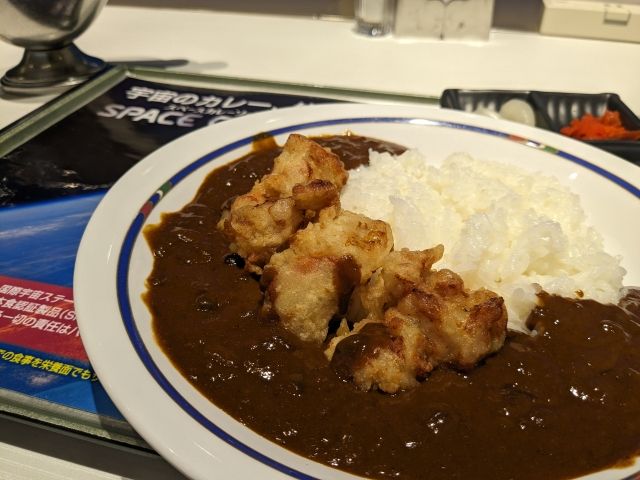 今回はビューレストラン スカイラインにて「スペースとり天カレー」にしました。名物グルメの「りゅうきゅう」や「やせうま」食べたいと思っていたのですが、さきほどスペースポートの記載を読んだため完全に宇宙に引っ張られてしまいました。