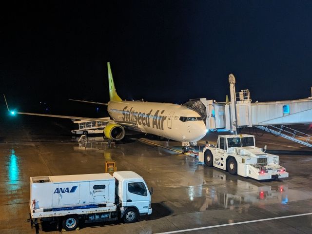 さて、6日間の旅もこれにておしまい。帰りのフライトはこちら、ソラシドエアの最終便。旅の最終日もたっぷり楽しめるように遅いフライトを選択しました。