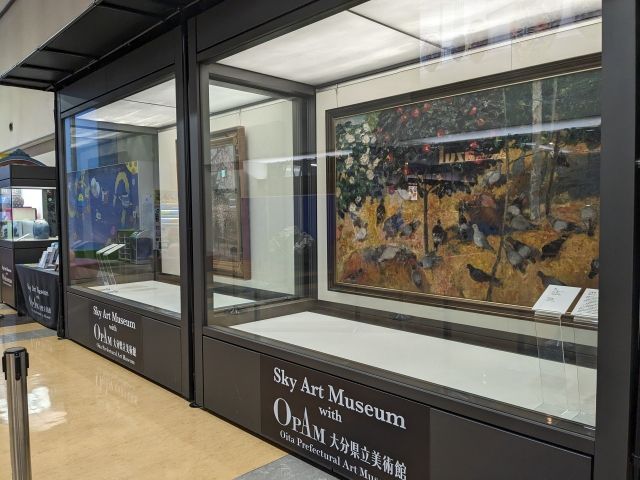 館内には「Sky Art Museum with OPAM大分県立美術館」というスペースが。訪問時は国東市生まれの画家、江東哲の《春》、中津市生まれの画家・熊谷九寿の《醍醐の春》が展示されていました。もしかして季節に合わせた作品を選んで展示しているのでしょうかね。