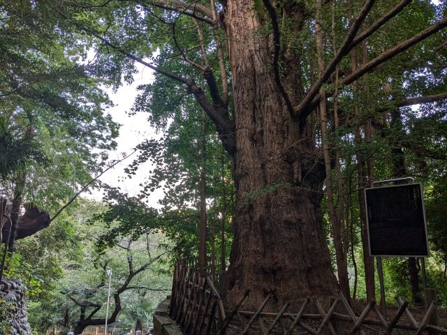 社殿に向かい右奥へ進むと、そびえ立つのは大イチョウ。幹周り5.2m、高さは24.2mという巨木で、樹齢は600年近いそうです。奇跡的に戦災を免れ、東京都の天然記念物にも指定されました。
