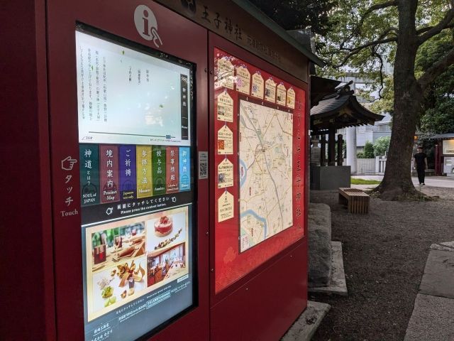 境内にはタッチパネル式の境内案内図が!夕暮れ時の訪問であったので、暗くても見えるのがありがたいです。