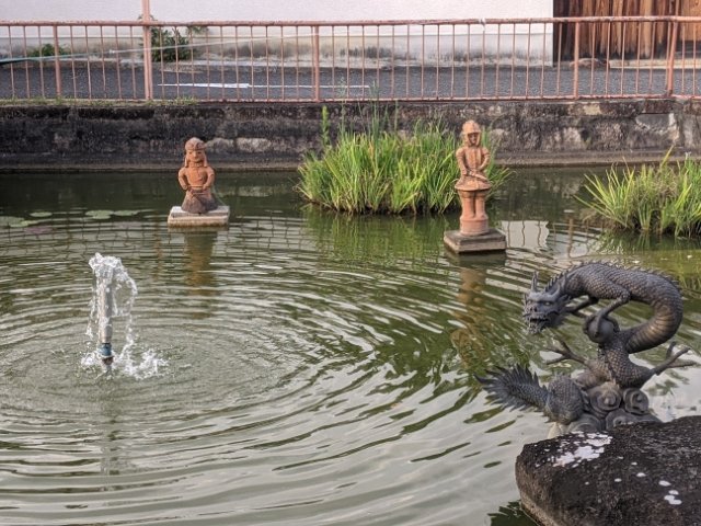 境内にある放生池には、水に浮かぶ埴輪の姿。こんなところでも古代を感じさせてくれます。